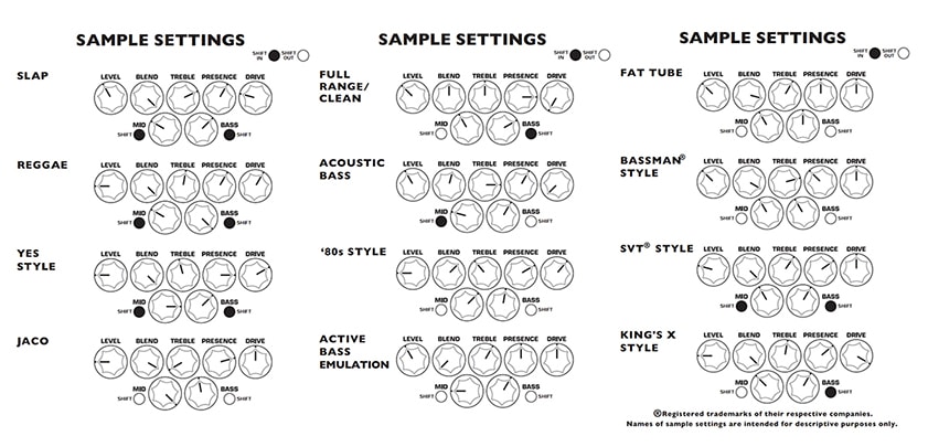 あと、マニュアルにはパッシブはVol.TONE全開、アンプはフラット、ブレンド量は最大でと推奨(?)記載されてますがそんなの無視で。