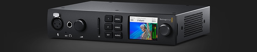 新登場のUltraStudio 4K Miniは、Thunderbolt 3に対応したポータブルなキャプチャー・再生ソリューション。12G-SDI、HDMI 2.0、アナログ接続など、最新の放送テクノロジーを搭載しています。4K DCI 60pまでのあらゆるフォーマットで放送品質の8/10-bitハイダイナミックレンジ・キャプチャー、4K DCI 30pまでのあらゆるフォーマットで12-bitハイダイナミックレンジ・キャプチャーを実現。フロントパネルには、プッシュボタンコントロール、LCD(信号モニタリングと設定用)、XLRマイク入力、1/4インチのヘッドフォンジャックを搭載しています。UltraStudio 4K Miniはキーボードおよびマウス接続用のUSBも搭載しており、Thunderbolt 3ポートに接続したラップトップコンピューターへのトリクル充電も可能。SDカードリーダーも内蔵されており、カメラのメディアカードに簡単にアクセスできます!