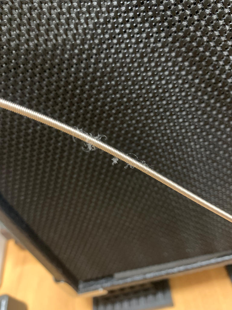 綿のような物は完全に巻き込まれている状態ですので製造時のものだとは思うのですが、まるでこっちが嘘をついているかのような言われよう、、、