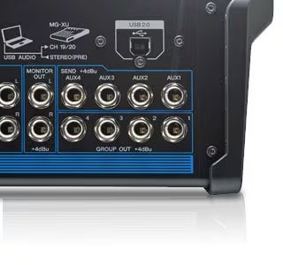 ステレオ入力はモデルによって端子構成を吟味しました。MG20XU / MG16XU / MG12XU / MG16X / MG12X / MG20 / MG16 / MG12は、ステレオチャンネルでありながらモノラルのXLR端子も使用できるチャンネルを装備し、モノラル/ ステレオラインレベル、モノラルマイクレベルの信号を入力できます。