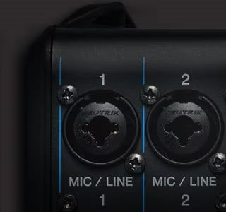 モノラル入力には高品質で名高いノイトリック社製コンボジャックを装備し、マイクとラインレベルの両方の信号を入力できます。音量レベルの高いソースに対応する26dBのパッドも装備しています。