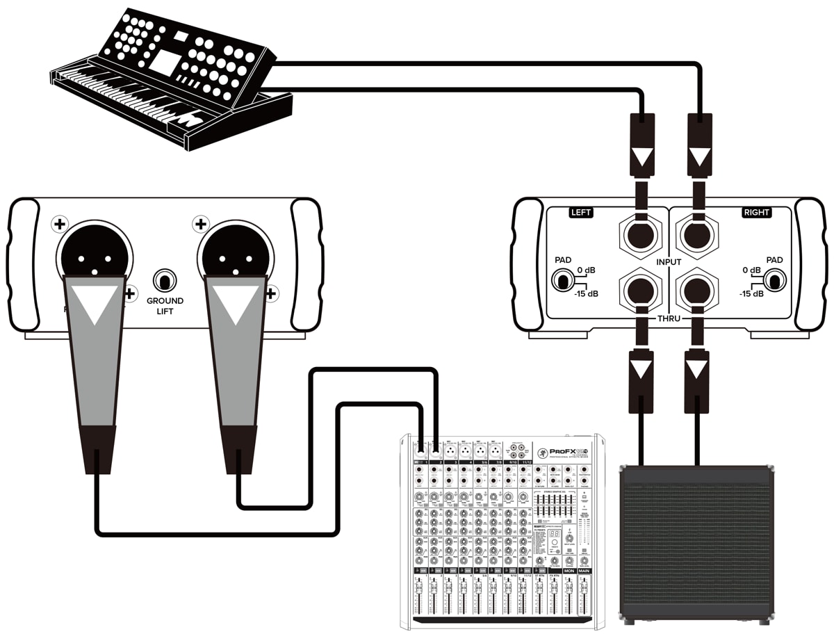 キーボードやシンセサイザーなどのステレオ機器に最適なMDB-2Pは、電子楽器ユーザー、ライブサウンド現場、レコーディングスタジオに欠かせないツールです。