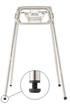 グリルの脚部が八の字型のため、転倒を防ぎます。また脚先にアジャスタ―がついているため、凹凸地面でも安定します。
