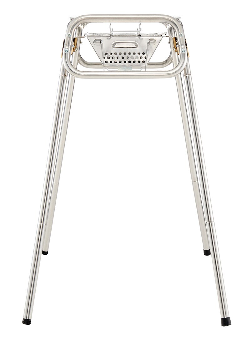 ハイポジションは、立食で使いやすい高さ80cm。あまり、かがむことなくBBQを楽しめるので、立食パーティーに最適です。また、ローポジションは、一般的なアウトドアチェアに座ったままで調理がしやすい高さです。