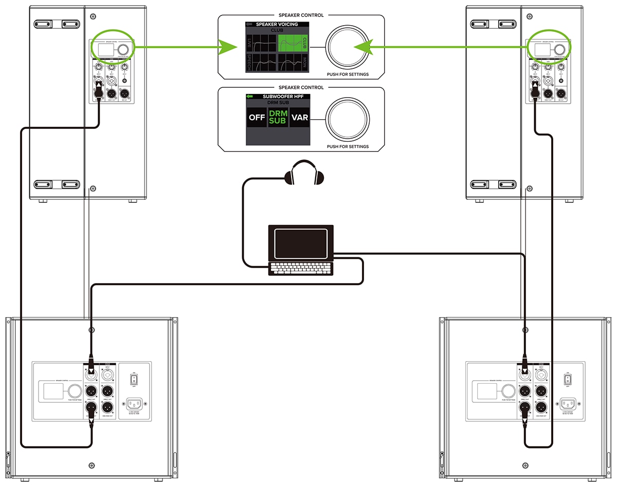 - ライブ、モニター、クラブ、スピーチなど、用途・会場に応じたモードを搭載。サブウーファー独立オプション(可変クロスオーバー)も利用可能。