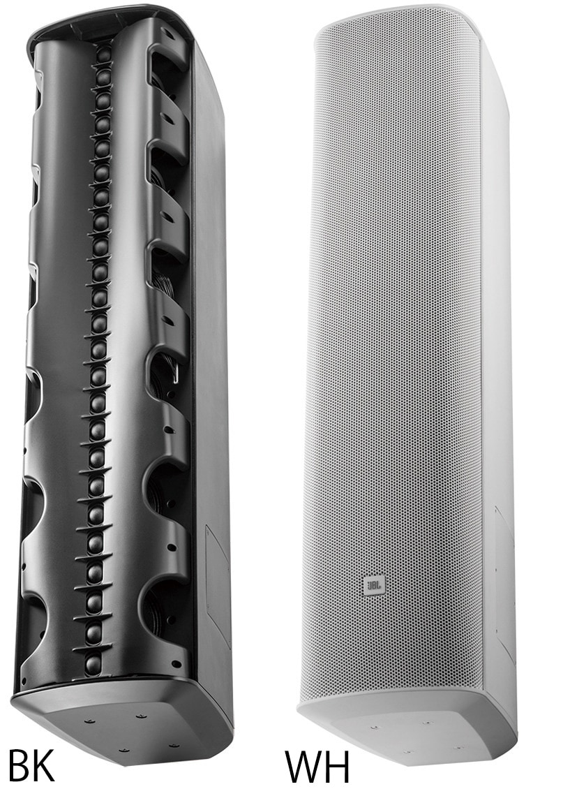CBT 1000-WHはJBL製のコラムスピーカー。放射音の垂直方向の角度や鋭さを、側面パネルで簡単に切り替え可能。上向きと下向き各4種類、全16パターンの中から選択可能。設置後の変更も容易。独自のTapered Horizontalウェーブガイドを搭載し、水平指向角は上から下に向かって約100~160°に広がるように制御。距離によらず均一なサウンドを提供。カラーはホワイトです。
