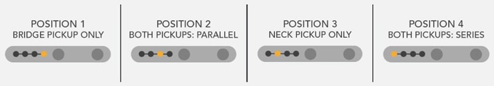 従来の3ポジションに加え、第4のピックアップ・セッティングを追加。ネックとブリッジのピックアップを直列接続することで、ハムバッカーのような厚みとパンチのあるトーンを生み出します。