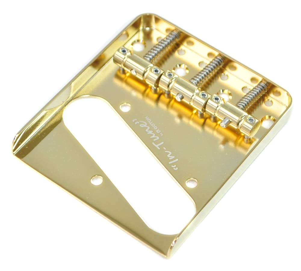 テレキャスター用リプレイスメント・サドルの大定番In-Tune BSを搭載したテレ用ブリッジ。GOTOH製ならではの正確な弦溝加工により、テレキャスのビンテージ・スタイル・サドルにありがちな、弦落ちやピッチのブレなどを解消できます。ブラス製サドルによるブライトな深みのあるサウンドも特徴です。ブリッジプレートは伝統的な縁のある仕様です。