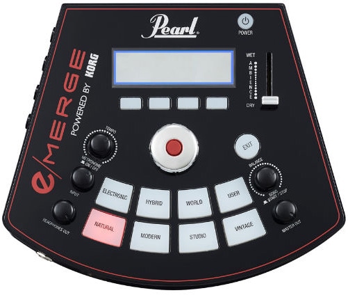 e/MERGEはアコースティック・ドラムメーカー Pearlの知識と資産に、電子楽器メーカー KORGの技術を"MERGE=融合"させた電子ドラムです。