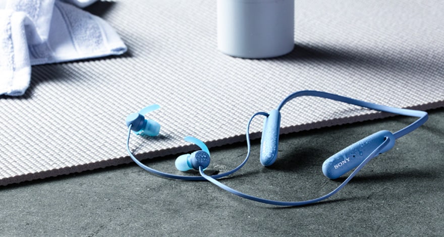 WI-SP510は、ネックバンドタイプの防水性能も備えたスポーツ向けワイヤレスイヤホン。迫力ある重低音サウンドを楽しめます。