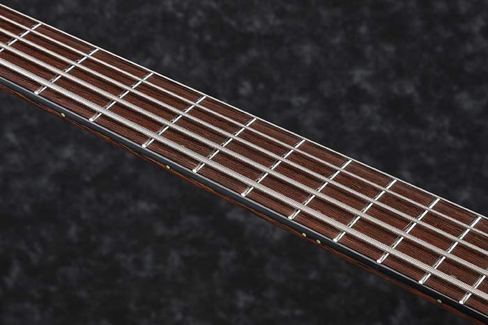 従来のベッドレスベースとは全く一線を画すベースです。特筆すべきはやはりマルチフレットからなるHi-Cが33inch、Low-Bが35inchそしてチャンバー機能が携わっていることです。高音はより艶やかで伸びのある音、低音は35inchのエキストラロングとなっているためとてもふくよかでゆとりがあります。さらにチェンバー機能が携わっているためか非常にアコースティックな鳴りがします。Ibanezというとヘビメタなどのイメージが強いですが全くそんなことは無く、リバーブ、コーラスを入れたら別次元の美しいサウンドがありました。