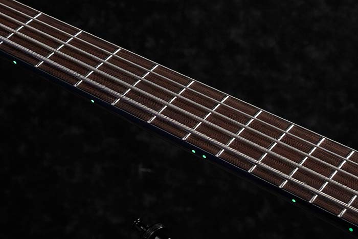 指板には蓄光のサイド・ドット・ポジション・マークを採用しています。