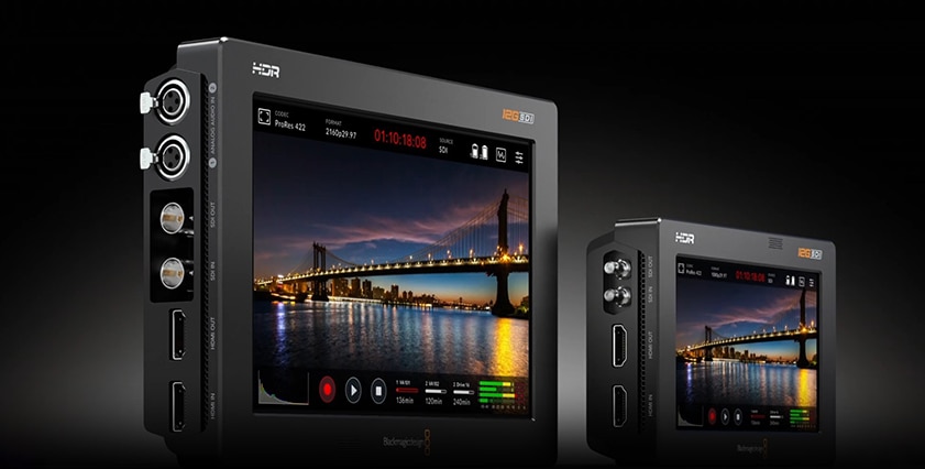 このモデルは、5インチ 12G HDRモデルと同じ優れた機能に加え、7インチのHDR LCDスクリーンを搭載しています。2つのSDカードレコーダー、そして外付けのUSB-Cフラッシュディスクに収録可能です。さらにBlackmagic Video Assist 12Gの両モデルは、Blackmagic RAWをサポートするカメラからBlackmagic RAW収録も可能です。