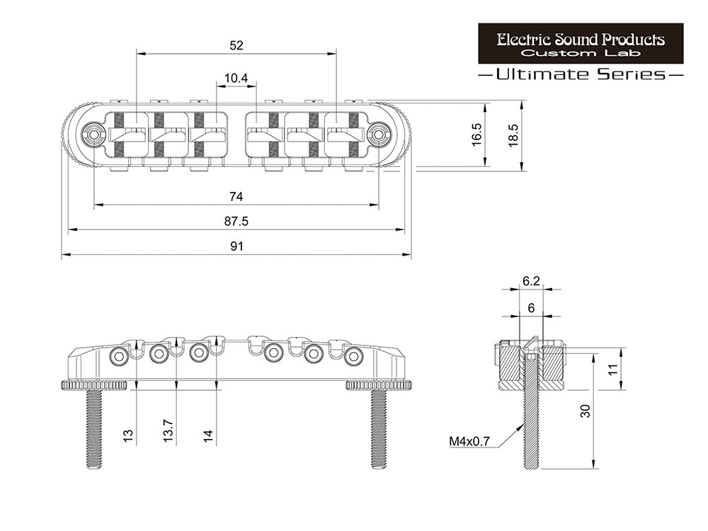 ・木ねじスタイルのチューンマチックから無加工で交換可能ですが、スタッドボルト(木ねじ)は付属のステンレス製に変更されることをお勧めします。スタッドアンカースタイルのチューンマチックの場合は、スタッドとアンカーは元の物を使用することで無加工で交換可能