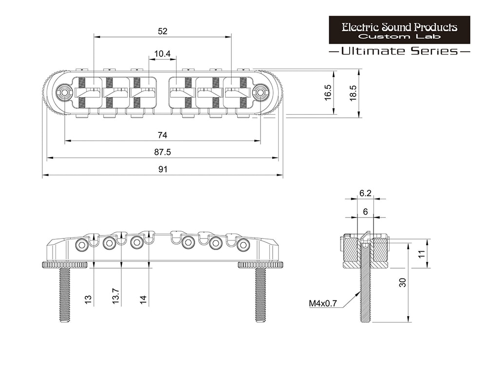 ・木ねじスタイルのチューンマチックから無加工で交換可能ですが、スタッドボルト(木ねじ)は付属のステンレス製に変更されることをお勧めします。スタッドアンカースタイルのチューンマチックの場合は、スタッドとアンカーは元の物を使用することで無加工で交換可能