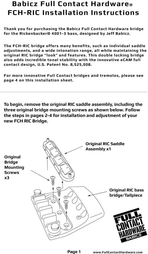 BABICZ / FCH Rickenbacker Bass Bridge Chrome