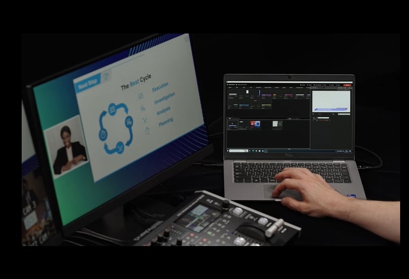 企業のプレゼンテーションや音楽ライブにおいて、スタンダードな手法になりつつあるハイブリッドイベント。リアル会場へのスクリーン送り出しとライブ配信を同時に実施する演出現場では、映像・音声の接続が非常に複雑になります。