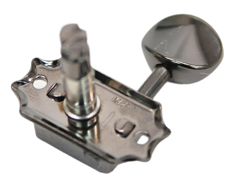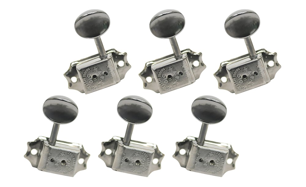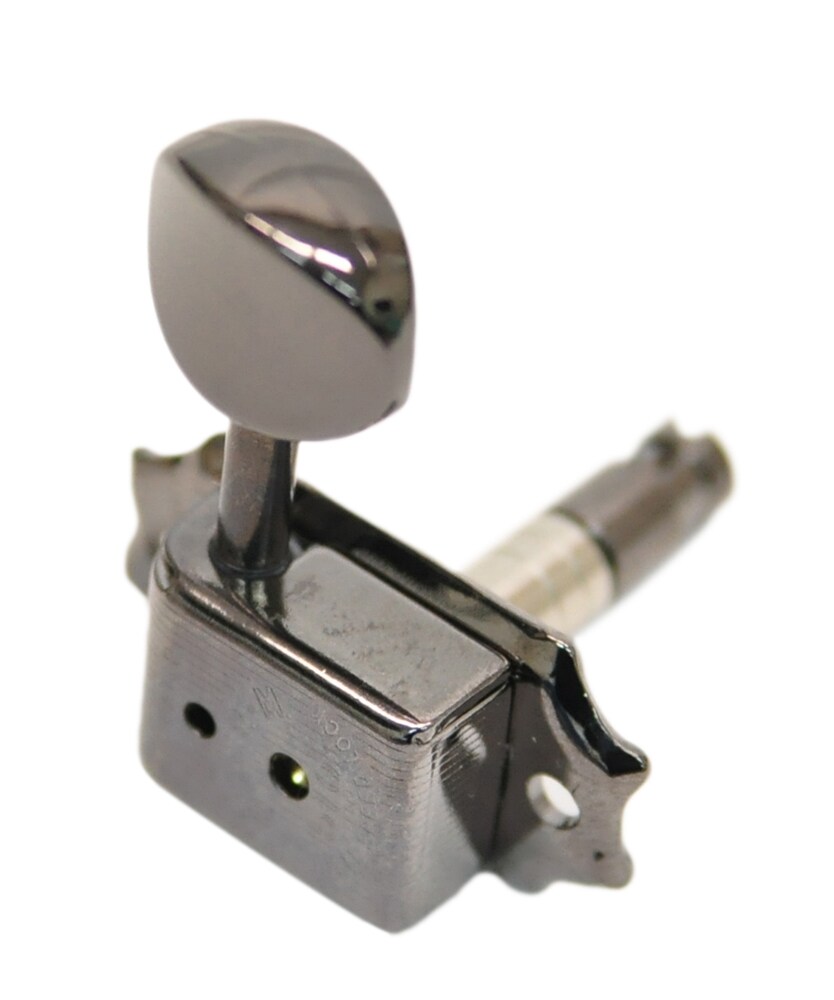 GOTOH製、ペグ配列3対3のギター用ロックペグ。HAPとMG機構がひとつになったハイトアジャスタブル・マグナムロック仕様、05Mボタン、カラー:コスモブラック。