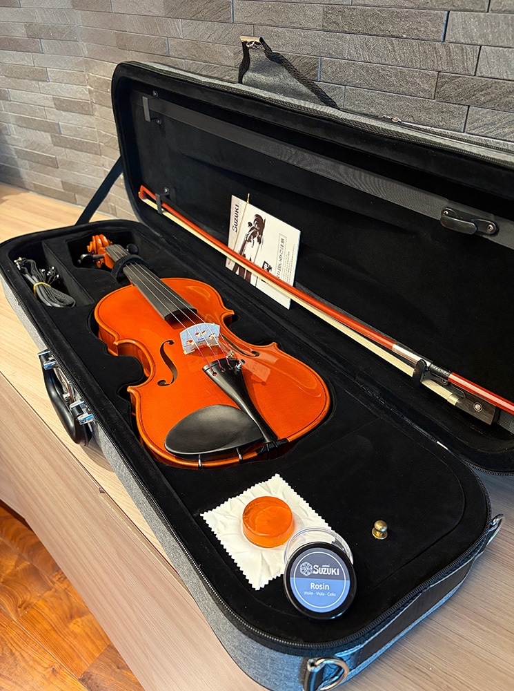 長年にわたってSUZUKIバイオリンから学習用モデルとして販売されているNo.300シリーズ。本体は単品販売もされているNo.310で、音量やパワーはもちろん、職人が表現するニスの色合いや虎杢の美しさもお楽しみいただける仕上がりとなっています。弓は希少材のフェルナンブコを使用した弓がセットとなっており、松脂とオブロング型のケースも付属します。日本の弦楽器メーカーSUZKIVIOLINをぜひご検討ください!