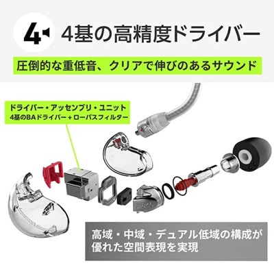 4つの高性能ドライバーにより、クリアな高域と比類のない低域を実現し、これまでにないリスニング体験を提供します。3ウェイ構成により、低・中・高域すべてで優れた空間表現を達成。Hi-Res Audio 認定も取得しています。