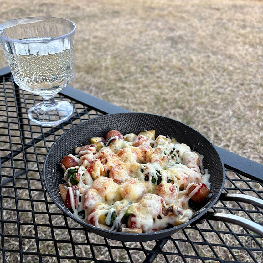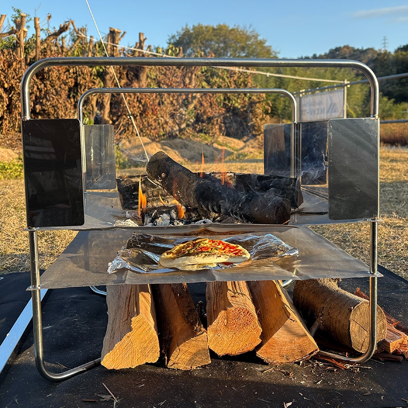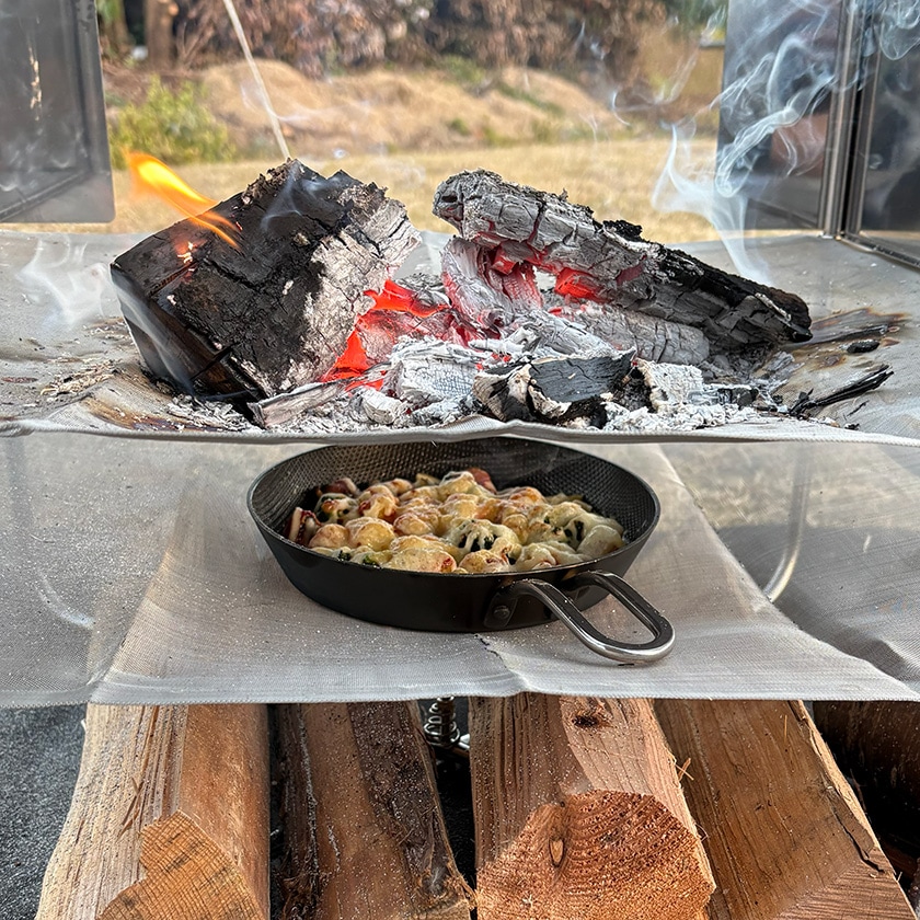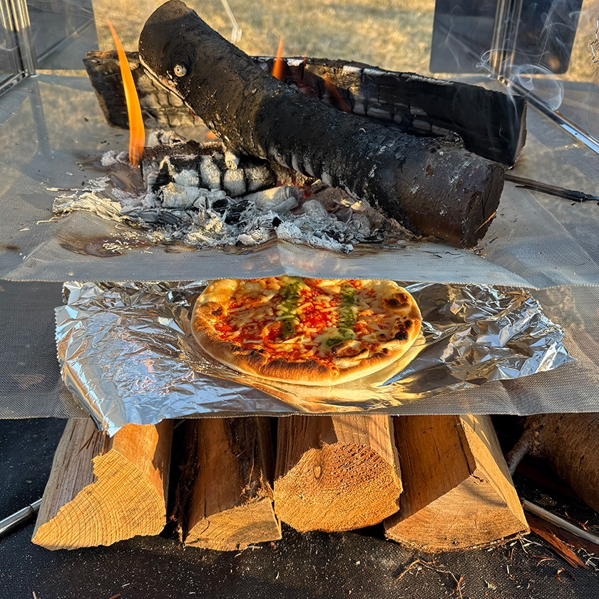 たき火をしながら、その下で同時にピザなどのオーブン料理が楽しめます。