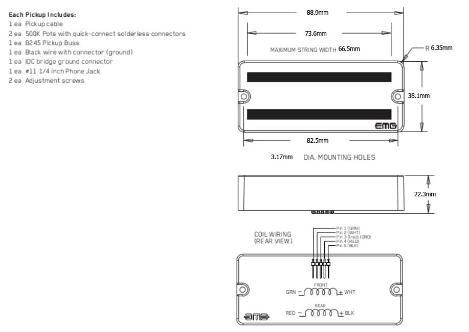 EMG Passive Extendedシリーズのベース用ピックアップ ソープバータイプ。ブレードタイプのマグネットで 弦間ピッチ最大66.5mmに対応します。デュアルコイル・ハムバッカーでノイズレスかつ高出力なサウンドが魅力。スチール入りセラミックマグネットを採用し、滑らかなアタックと迫力のあるミッドレンジレスポンスを備えたあたたかみのあるトーンを提供します。