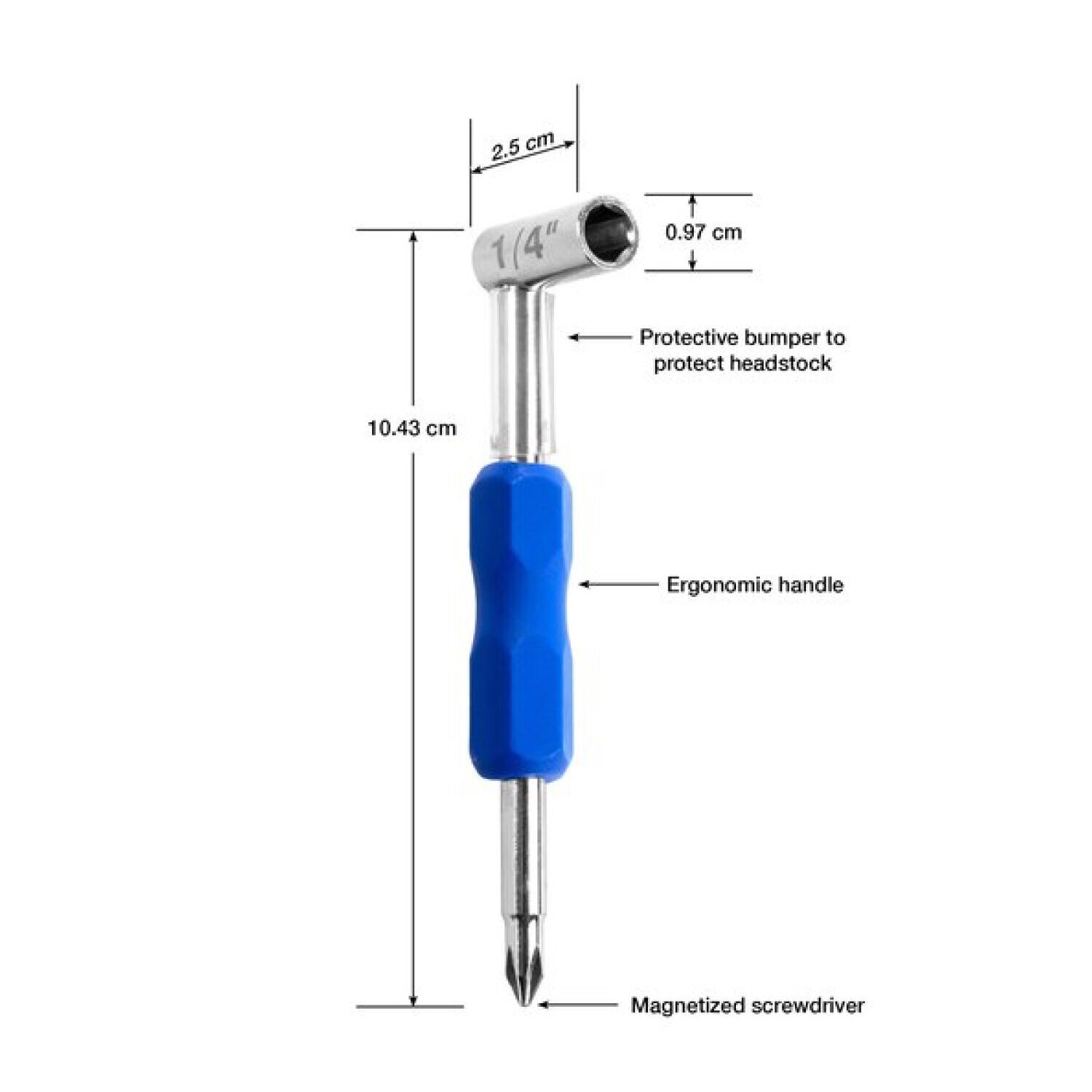 頑丈な炭素鋼製のレンチと人間工学に基づいた快適なハンドルは、小さなトラスロッドカバースクリューとヘッドストックを保護するための保護バンパーと磁化されたプラスドライバーを装備。