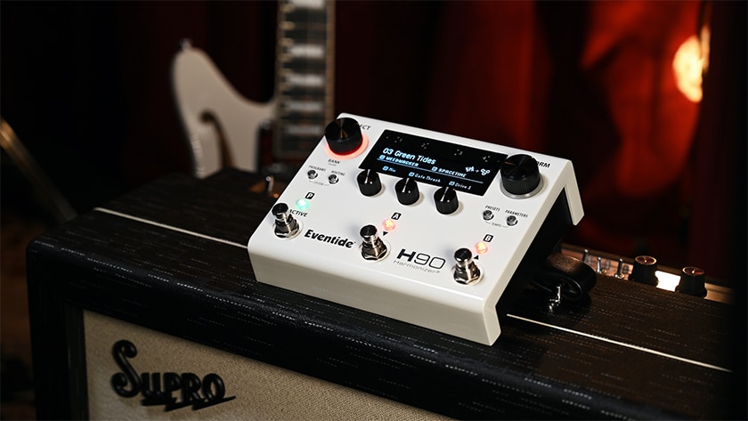 H90 Harmonizerは、ライブパフォーマンスでも威力を発揮します! フロントパネルは、5つのプッシュノブ、7つのLEDボタン、高解像度の有機ELディスプレイで生まれ変わり、より実践的なコントロールとパラメーターフィードバックが可能になりました。2つの大型プッシュノブにより、SELECT、BANK、PERFORMモードの切り替えが簡単に行えます。PERFORMモードでは、6つのプログラマブルフットスイッチを使用できます。タップテンポ、プリセット、インサートバイパス、モメンタリーなどの機能をマッピングしたり、リバーブフリーズ、ピッチフレックス、ディレイリピートなどのオプションを使用したり、3つのHotSwitchで瞬時に複数のパラメーターを変更することができます。