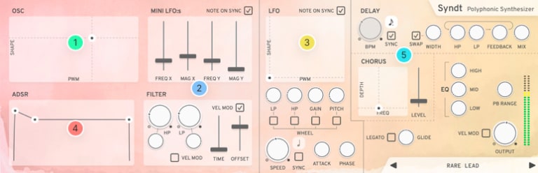 ・XYパッドベースのオシレーターとLFO(X軸のPWMとY軸のサインとスクエアの間のモーフ)