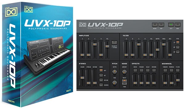 ※UVX-10Pは、UVIのビンテージシンセ、サンプラー、ドラムマシンの36インストゥルメント、5,000音色以上のアルティメイトビンテージシンセコレクションを網羅したVINTAGE VAULTにもバンドルされています。
