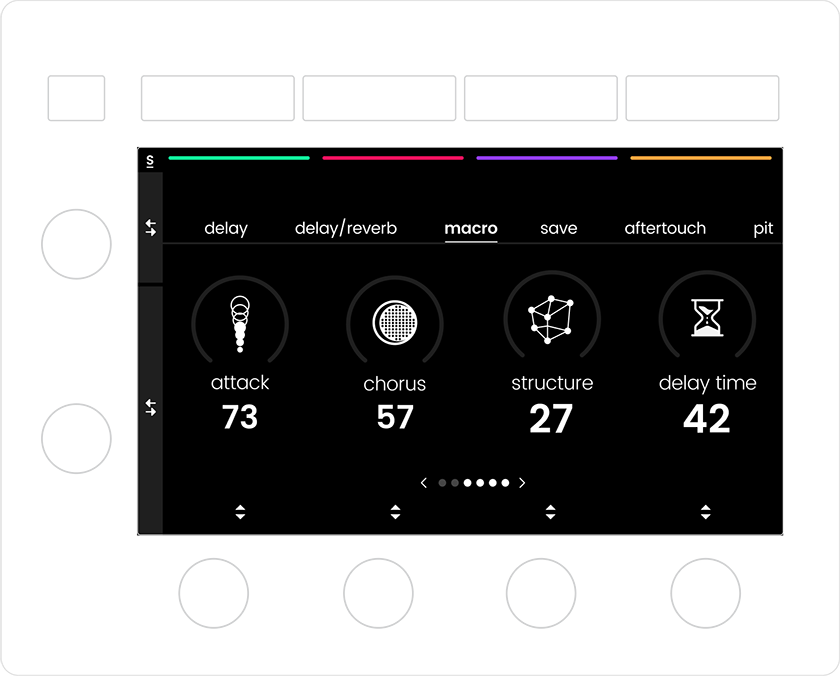 Osmose のオペレーティングシステムは、4つのシンプルなメニューを中心に設計され、音楽制作に必要なすべての操作を直感的に行えます。