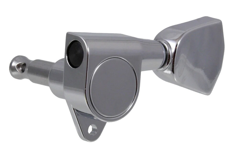 メタル製のキーストーンボタンとクロームカラーが、ギターのルックスをクールに引き締めます。ギア比14:1で、安定したチューニングを実現。レスポールなどの3対3配列ヘッドギターにおすすめです。