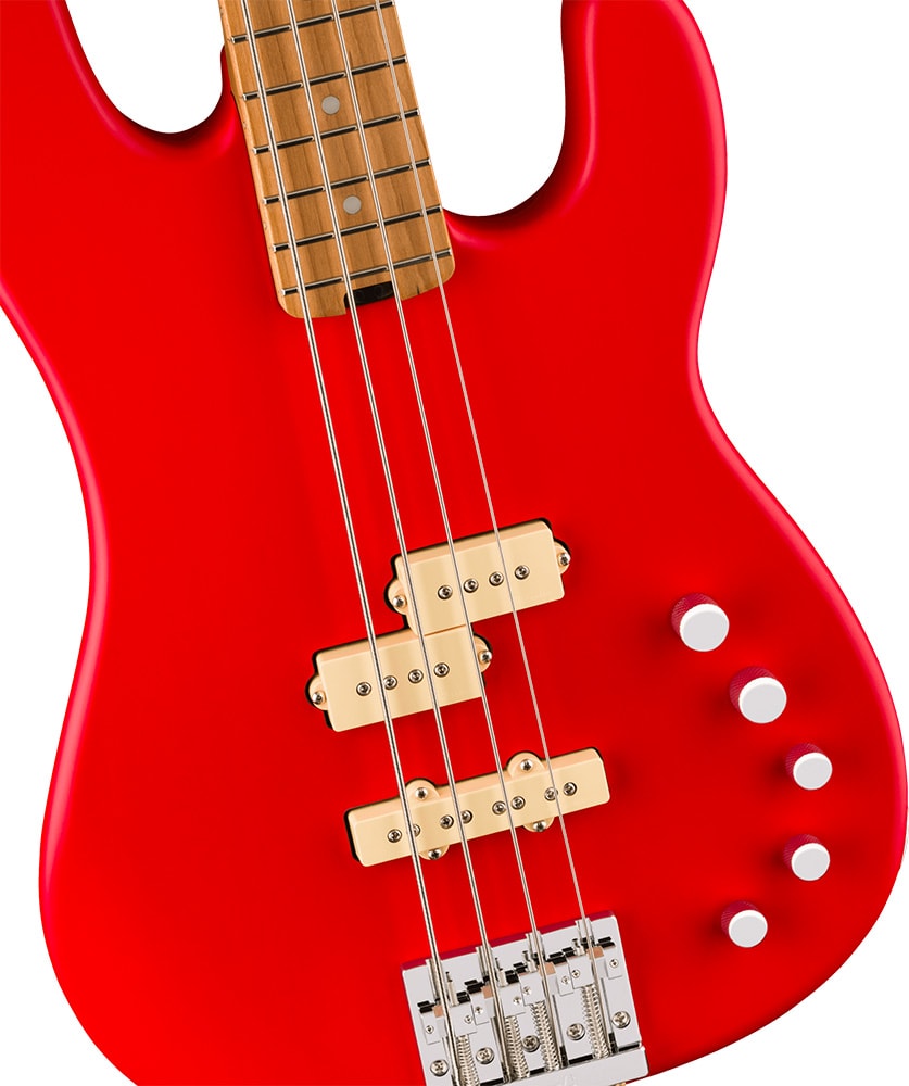 またピックアップにはオリジナル同様、ハイパワーのPro-Mod San Dimas Bass PJ IV MAHはDiMarzioピックアップを搭載しています。ブリッジにはパンチの効いたModel Jピックアップ、ミドルにはウォームでファットなトーンにミッドレンジの粘りを加えたModel Pピックアップが採用されています。3バンドアクティブEQ、ピックアップブレンドコントロール、プッシュ/プルセレクター付きマスターボリュームといった多彩なサウンドデザインを可能にするコントロールを装備。プッシュ/プルセレクターは、ボリュームノブを軽く引くだけでEQのアクティブ回路がバイパスされ、アナログ回路に切り替わりますので、バッテリーの残量を気にすることもありません。