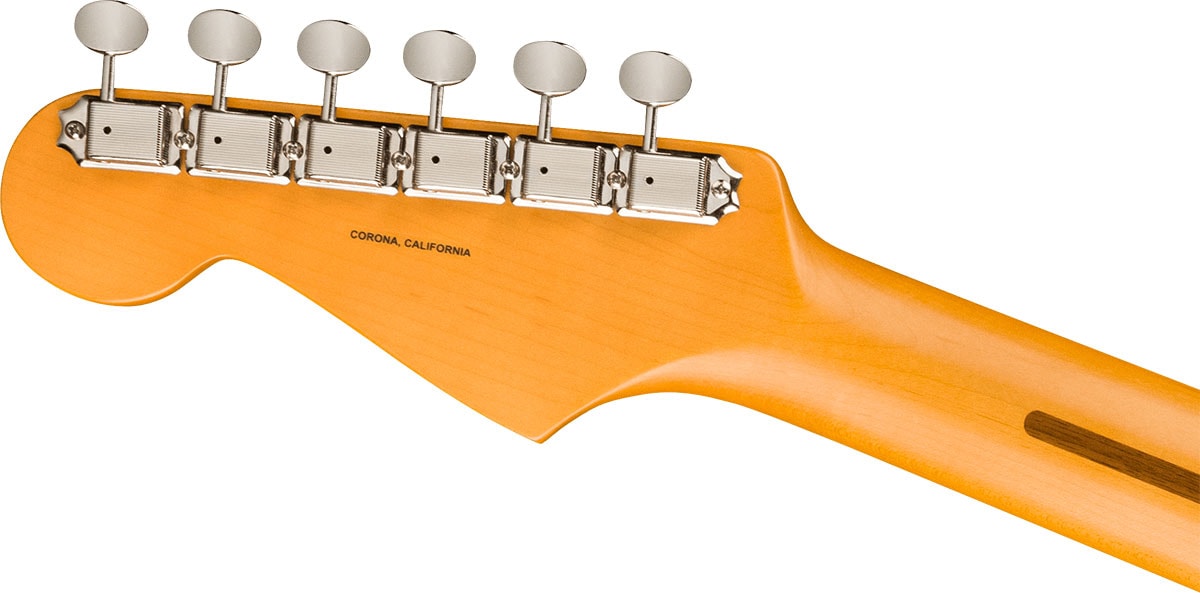 で、Tone 1ノブはカスタマイズされたミッドブーストの出力調整に使用できます。 現代的で実用的な機能を盛り込みつつ、クロームハードウェアやエイジドホワイトパーツ、1-plyエッグシェルピックガード、ヴィンテージスタイルのロッキングチューナーなど、クラシカルな美しさをまとった至高のモデルです。
