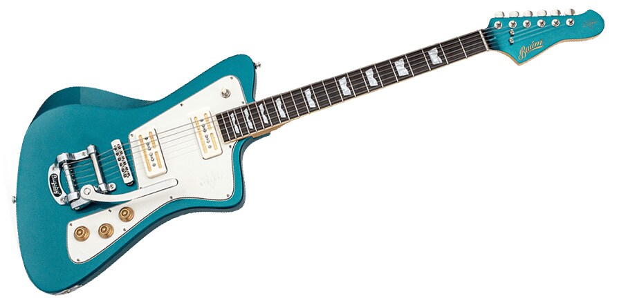ネックは手に馴染むシルク・フィニッシュ(艶なし)、ボディーとヘッドはグロス・ラッカー・フィニッシュを採用し、6インラインのウェーヴ・ヘッドストックを採用したマッチング・ヘッド仕様で、ホワイト・ピックガード(3プライ)を組み合わせています。