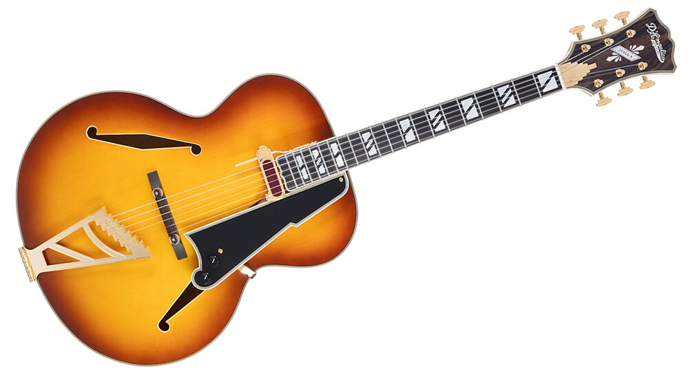特徴的なスローバック・シェイプのヘッドストック・デザインはディアンジェリコの伝統を継承しています。