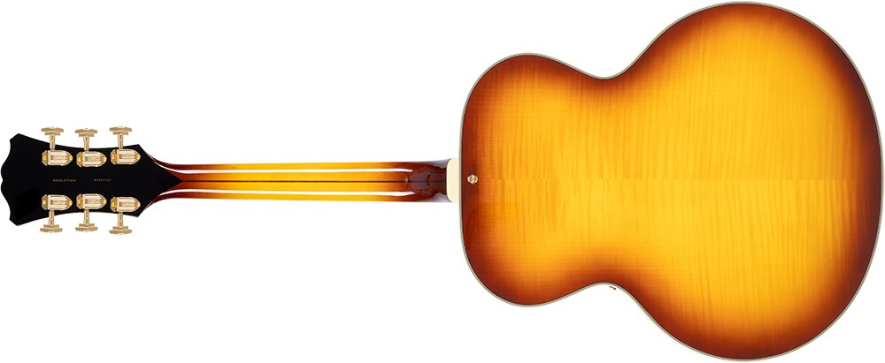 ボディー・トップはスプルース、サイド&バックはフレイム・メイプルです。ネックはメイプルの間にウォールナットを挟んだ反りや捻じれに強い3ピース構造(メイプル/ウォールナット/メイプル)で、エボニー・フィンガーボードを用い、24.75インチ(628.65mm)のスケールを採用しています。