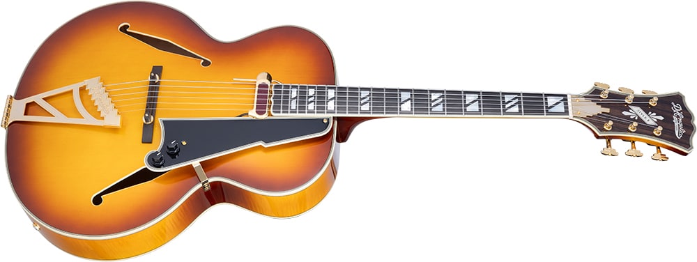 ピックアップは、1930年代から40年代のディアンジェリコのType Bに搭載されていたフィンガーボード・マウントのフローティング・シングル・コイルで、ディアルモンドのRhythm Chief 1000を搭載しています。