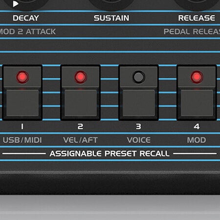 作成したサウンドは自由に保存でき、さらにプリセット・リコール・スイッチへ割り当てることで、ジャムセッションの最中でも瞬時に音色を切り替えることが可能です。