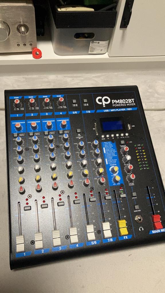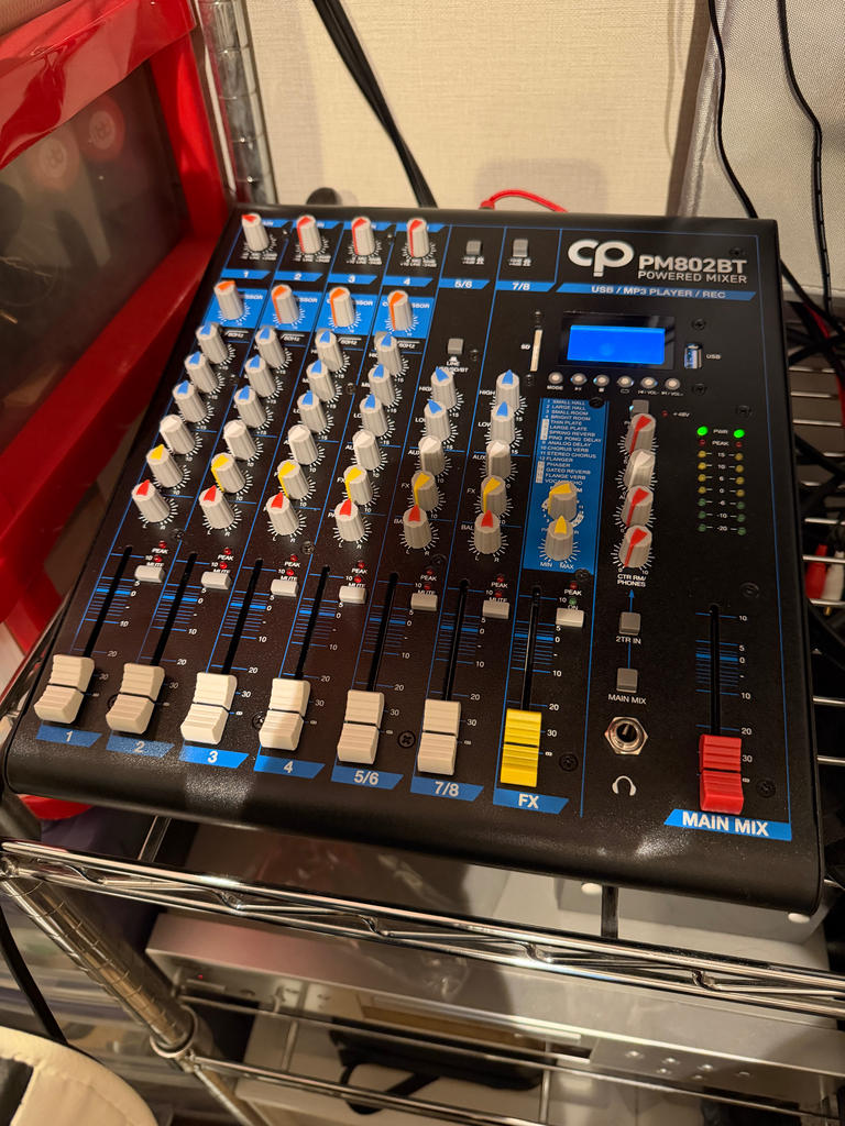 月一で小さなカフェで弾き語りをやっています。今まで中古のPM802FXにパッシブスピーカーCSP8を二台繋げて使っていましたが、FXは電源スイッチとコンセントが近すぎて入れにくかったり、間違えてファンタム電源を入れてしまったり、レベル操作もフェーダーではなくつまみだったので使いにくく、ストレスを感じていたので買い替えを決意し購入しました。
