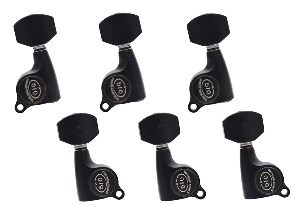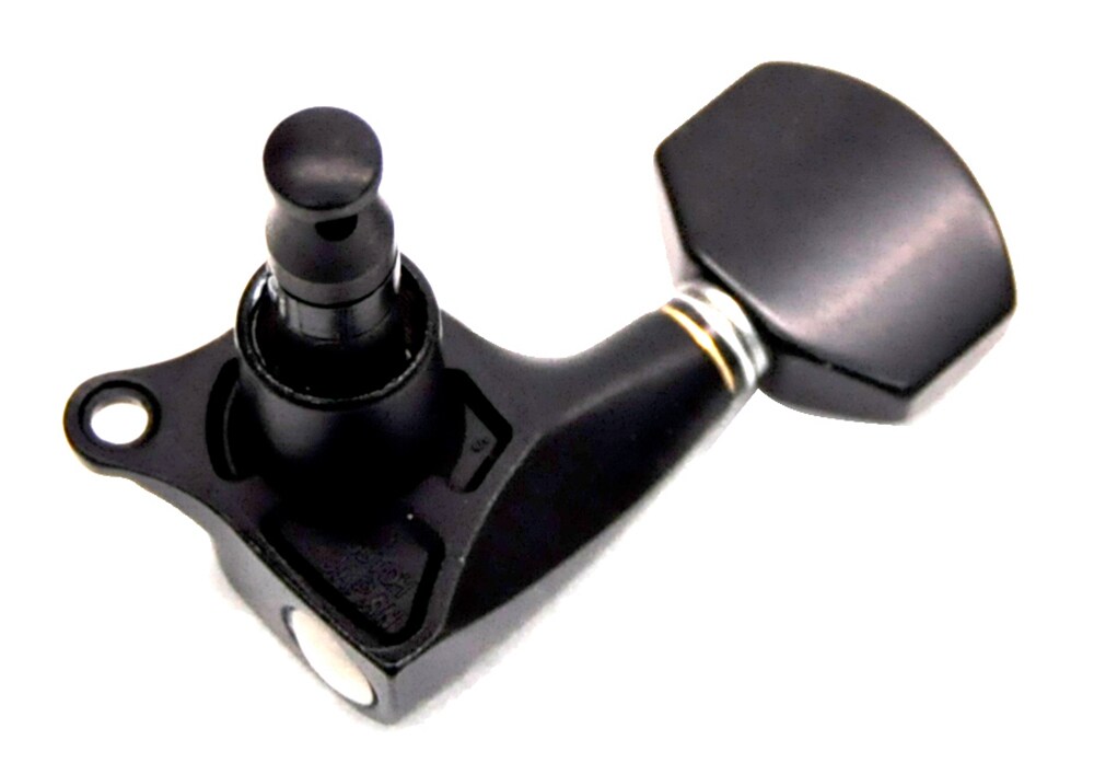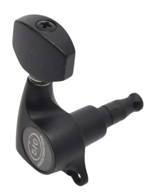 GOTOH製、ペグ配列3対3のギター用ロックペグ。弦のテンションを利用してロックがGOTOH製、ペグ配列3対3のギター用ロックペグ。スタンダードシャフト、B07ボタン、カラー:ブラックサテン。