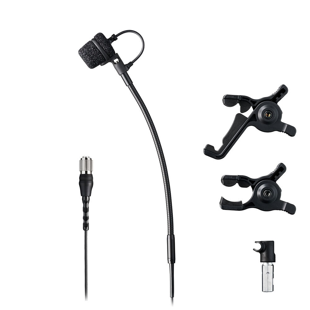 バックエレクトレット型カーディオイドのコンデンサーマイクロホンです。プロのライブサウンドやスタジオ機器で使用するように設計されています。ラインナップのマウントやマウントシステムを使用することで、弦楽器や木管楽器など、さまざまな楽器の音を正確に収音可能。またフレキシブルなグースネックにより、ハードな演奏でもマイクロホンを正しいポジションにキープできます。