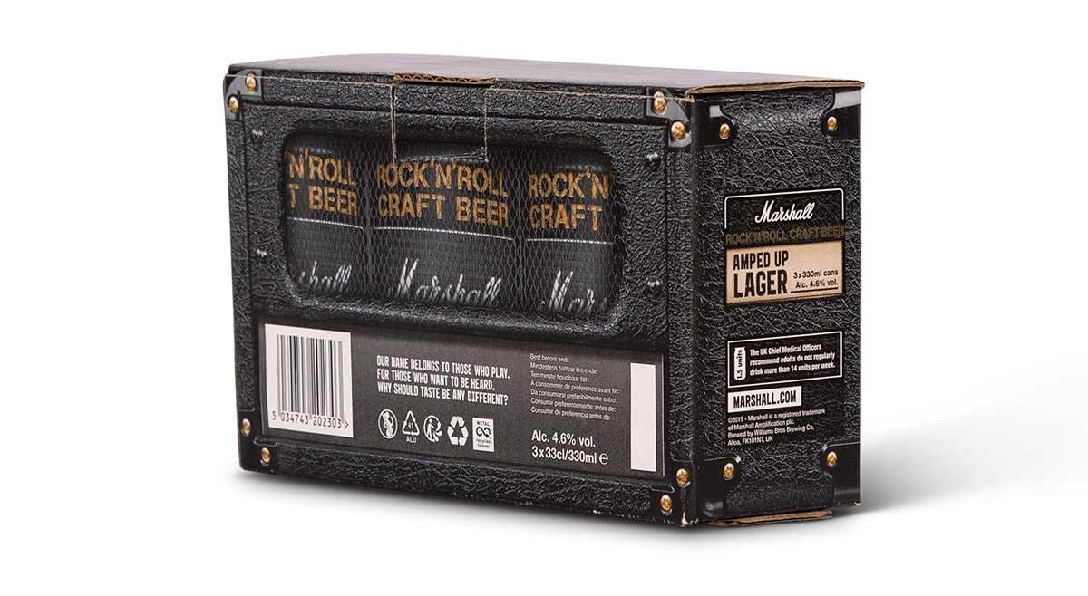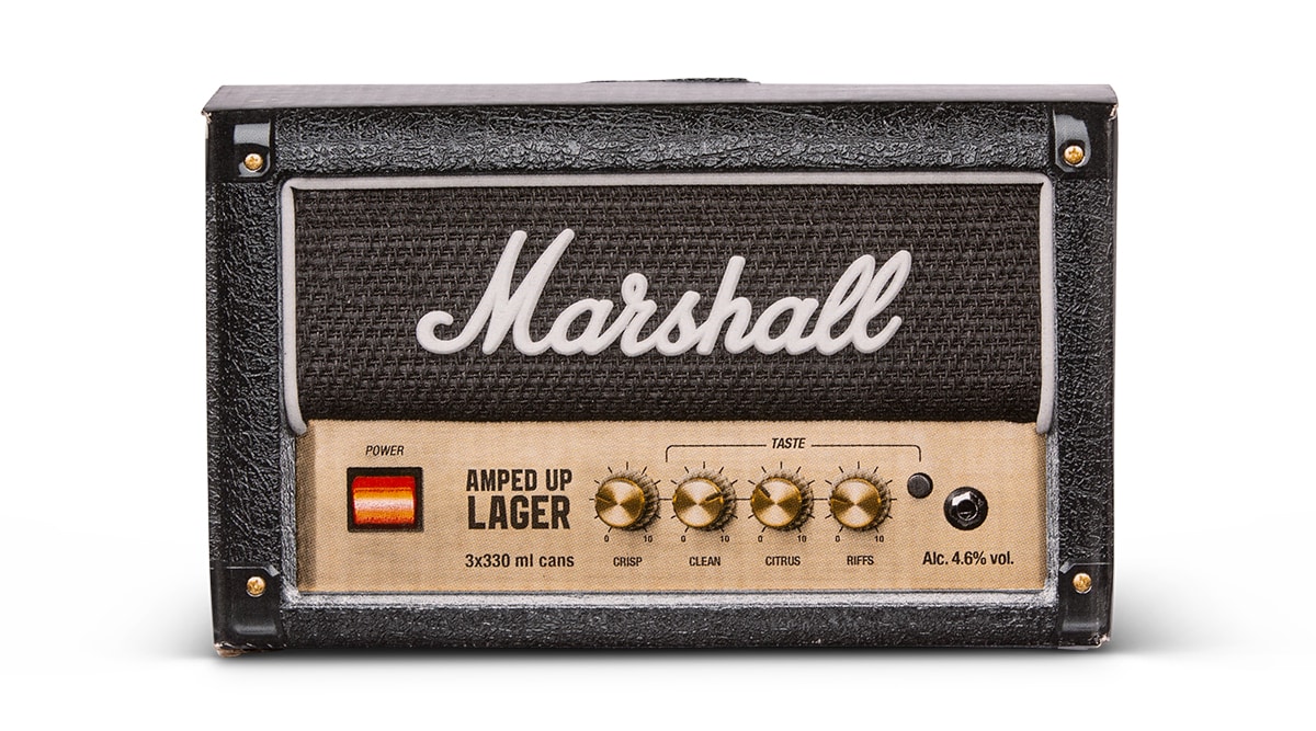 マーシャルの公式ビール、アンプトアップ・ラガーは、音楽を愛し人生をラウドに謳歌するすべての人のロックンロール・クラフトビール。ラガービールならではのクリスプな喉ごし、フレッシュで心地よい柑橘系のアロマ、そしてはっきりとした苦みとコクがあり、バランスの良さと味わいの奥深さを堪能できます。ディテールにこだわったアンプヘッド型のギフトボックスにも注目です。