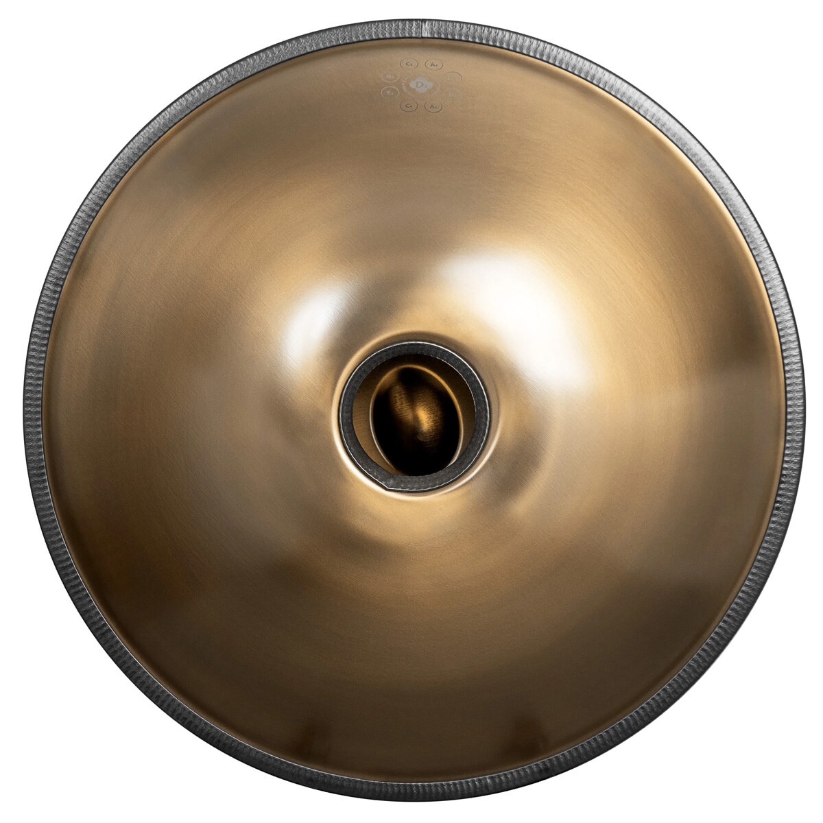 ステンレス製ハンドパンは、窒化銅製よりも長いサステインが特徴で、ゆったりとした演奏に適しています。