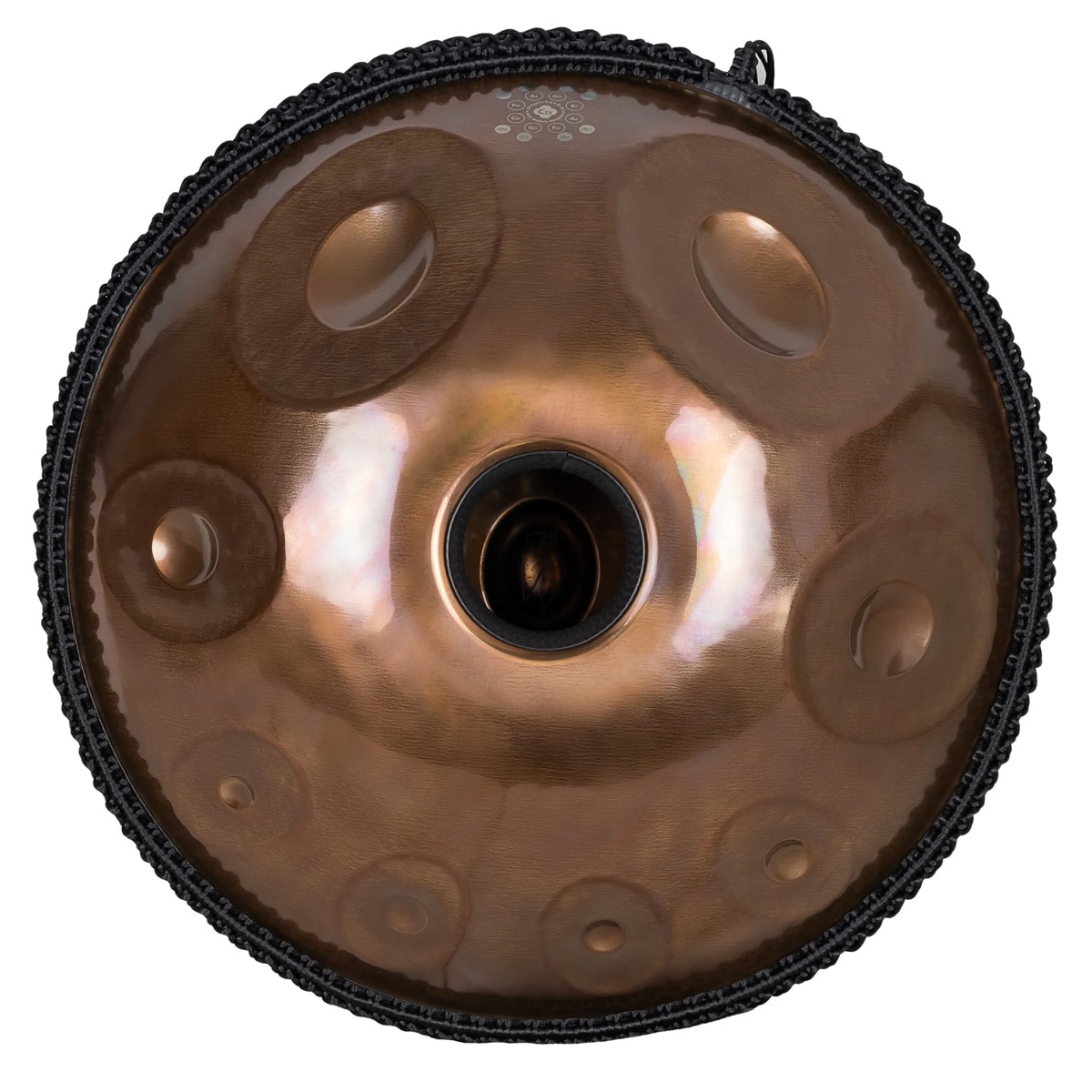 ステンレス製ハンドパンは、窒化処理されたものよりも長いサステインが特徴です。ゆったりとした演奏に特に適しています。