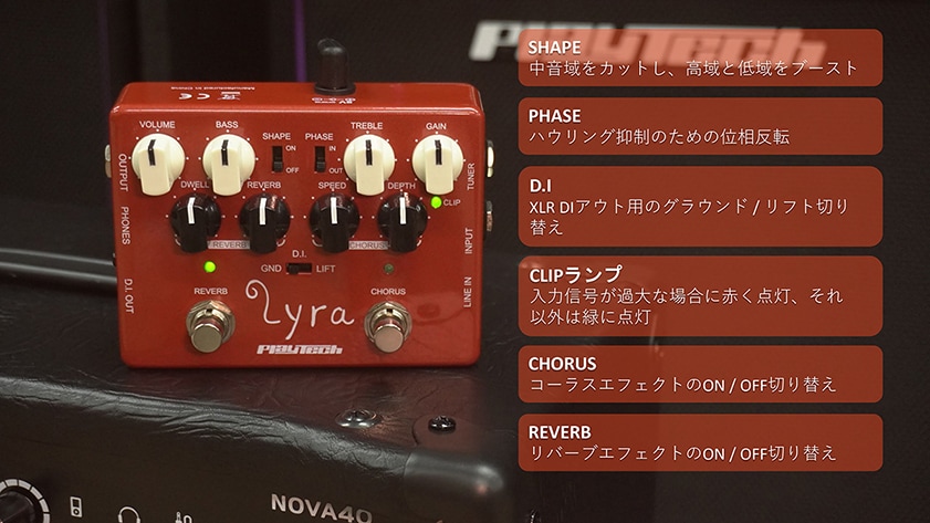 リバーブ コーラスもじゅうぶん過ぎるほど良い感じでかかってくれますね。アコースティックライブでDIとして使うのであれば問題なく使える一品です。