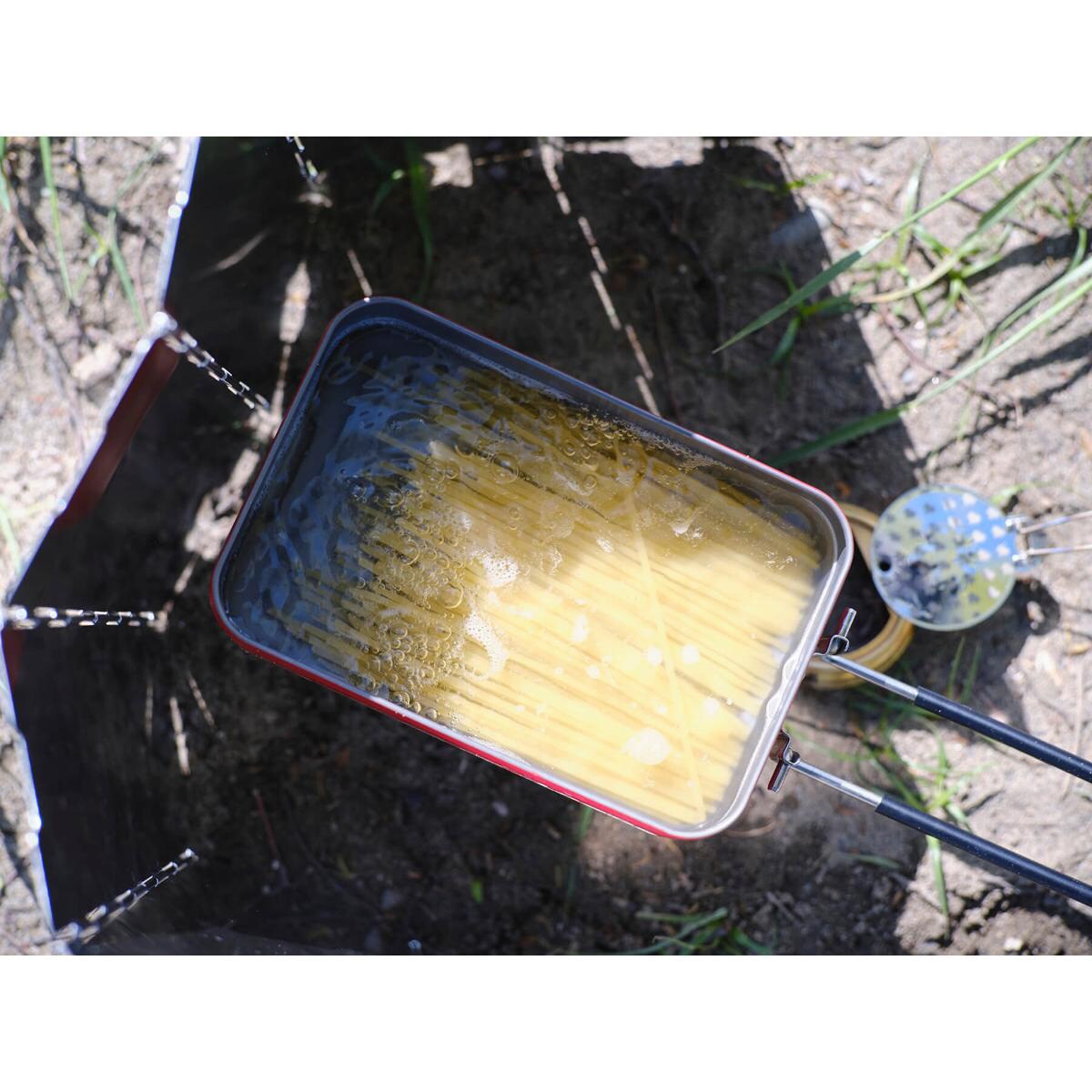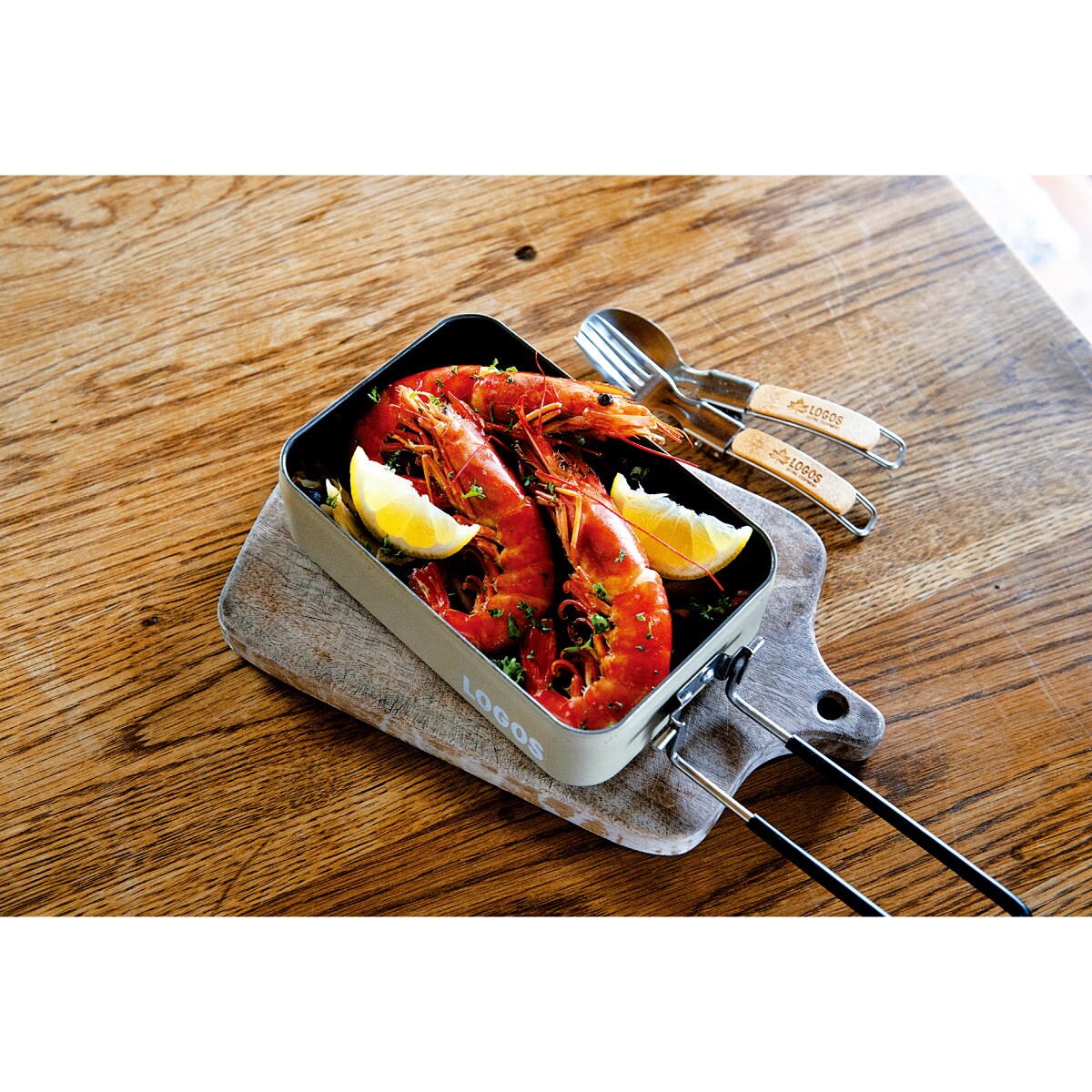食器としても使えるLOGOSのシンプルなメスキット。直火調理可能なフライパンや鍋、お皿代わりになり、さまざまな調理が可能です。ソロキャンプに最適!耐久性に優れたハードアルマイト加工を施しています。
