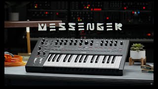 コンパクトな筐体から迫力のサウンドを生み出すMessengerは、ウェーブフォルディング機能を備えた2基のオシレーター、連続可変のウェーブシェイプを持つサブオシレーター、ループ対応のADSRエンベロープを2基、ベロシティとアフタータッチに対応した32鍵のフルサイズ・セミウェイテッド鍵盤、そして高いレゾナンス設定にしたときの低域補正や複数のフィルタースロープ、マルチモード動作に対応した伝説的なMoogラダーフィルターを搭載しています。