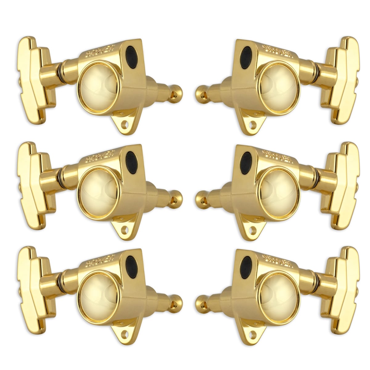 ギター用ロートマチックペグの大定番GROVERに印象的な3-ステップ・ノブを採用した109シリーズのゴールドカラー。18:1のギア比を採用し、より繊細なチューニングを提供。チューニング精度は言わずもがな、エレキ、アコースティックギターの3対3ペグ配置仕様の高級感を演出するペグです。