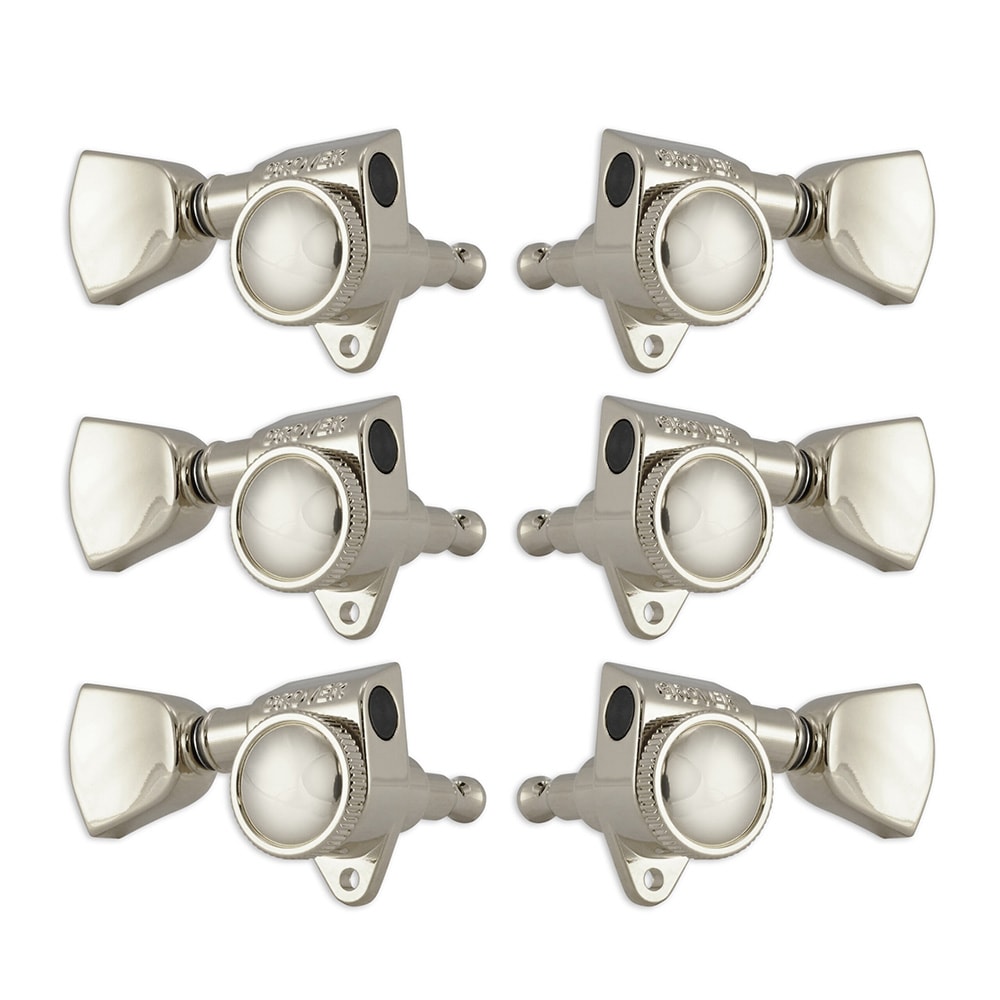 GROVERの大定番ギター用ペグにロック機能を搭載したロックペグROTO-GRIPS 502シリーズのキーストーンボタン ニッケルカラーデザイン。背面のホイールを回し弦をロック。弦のシャフトへの巻き数を減らし、より安定したチューニングを実現。18:1のギア比を採用しており、繊細なチューニングも提供します。